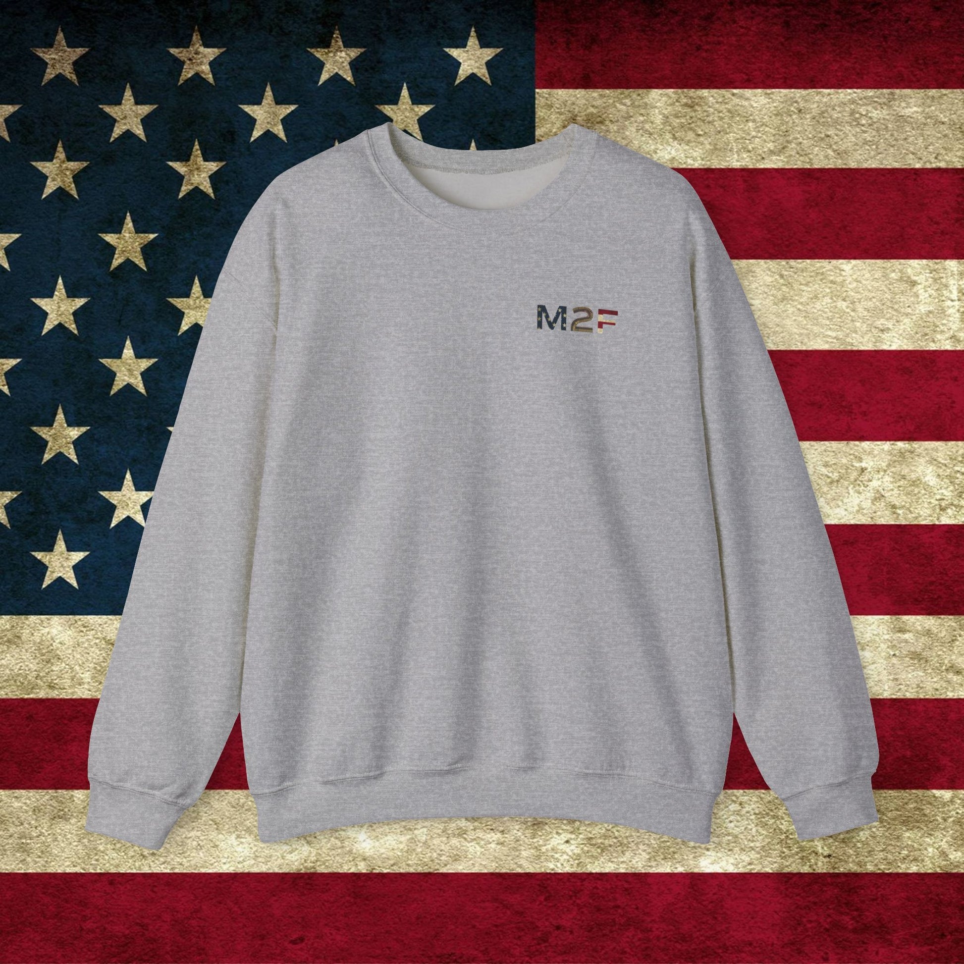 M2F American Flag Crewneck Sweatshirt — Vintage USA Patriotic Pullover